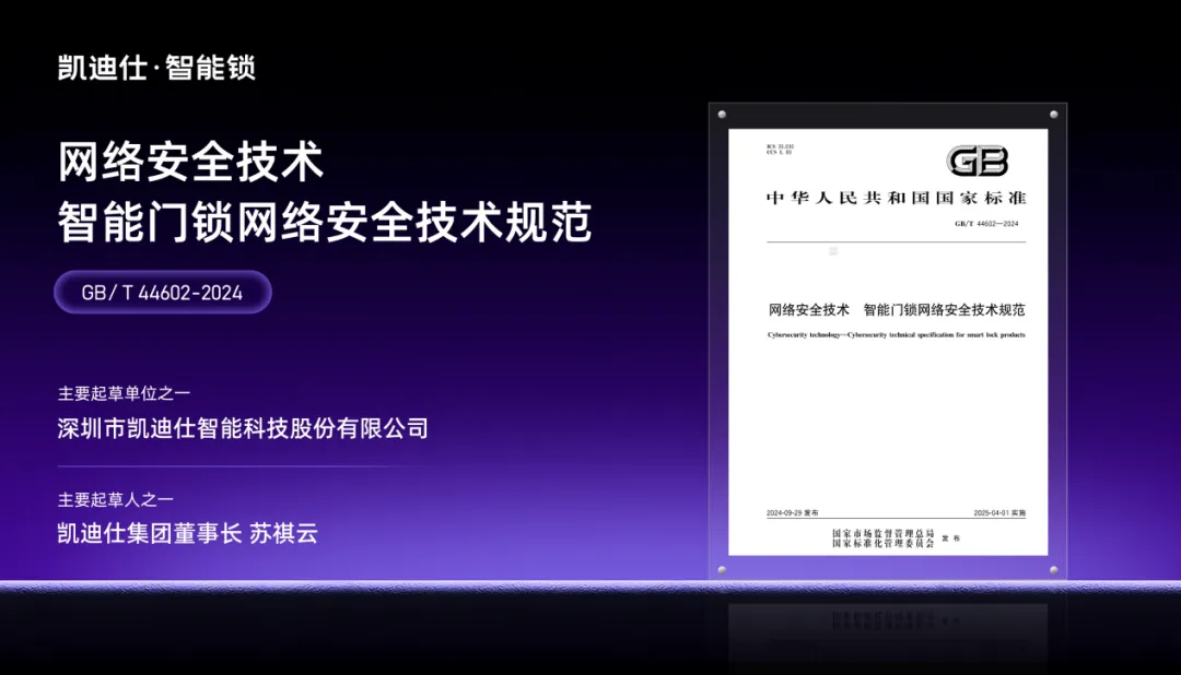 凱迪仕參與制定 “智能鎖行業(yè)最新國(guó)家標(biāo)準(zhǔn)”,為行業(yè)樹(shù)立標(biāo)桿典范!